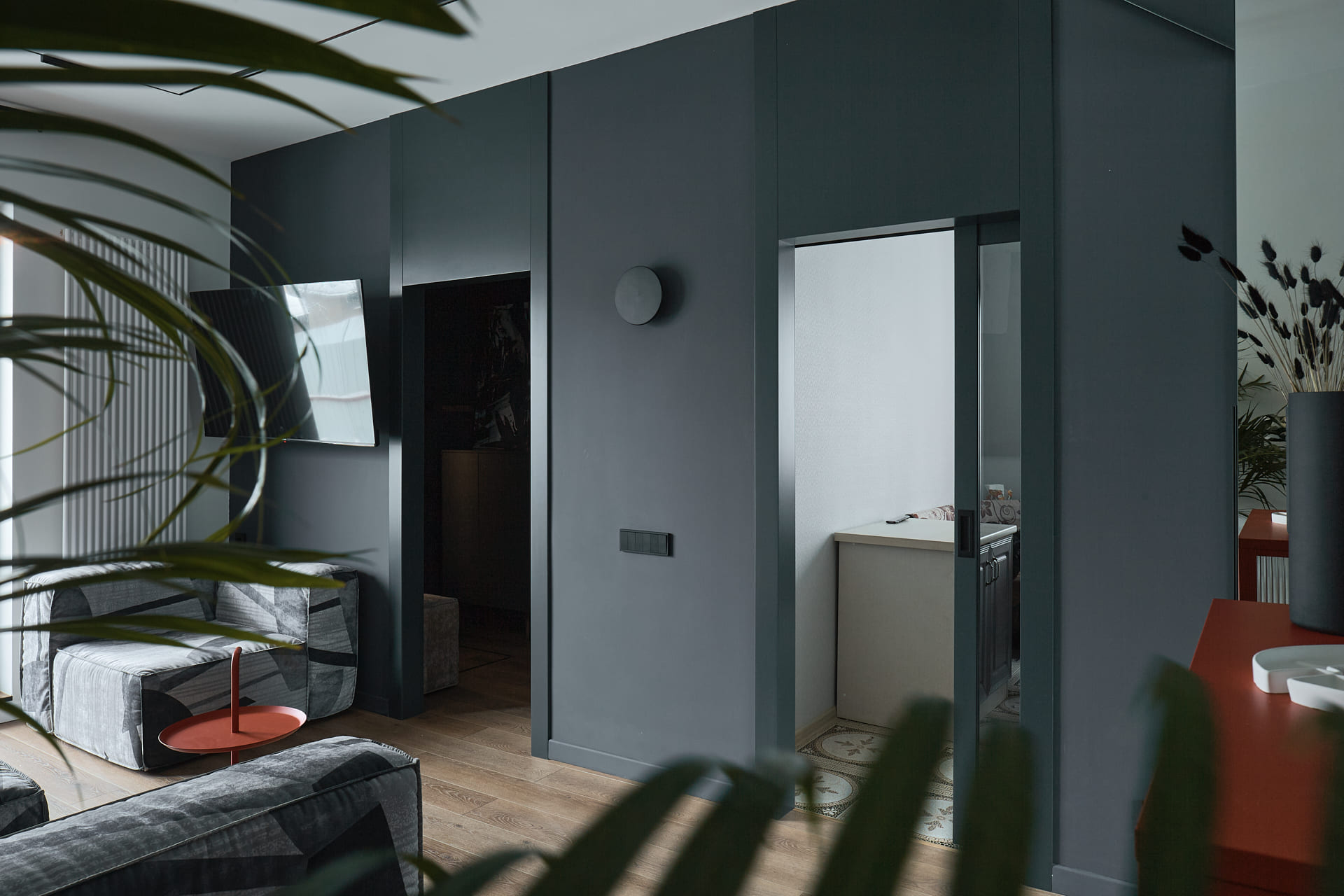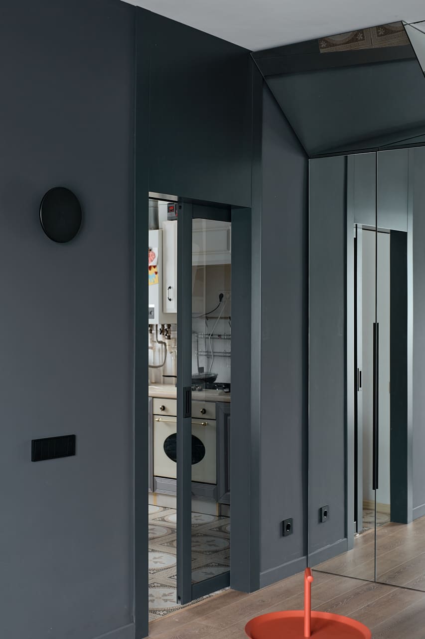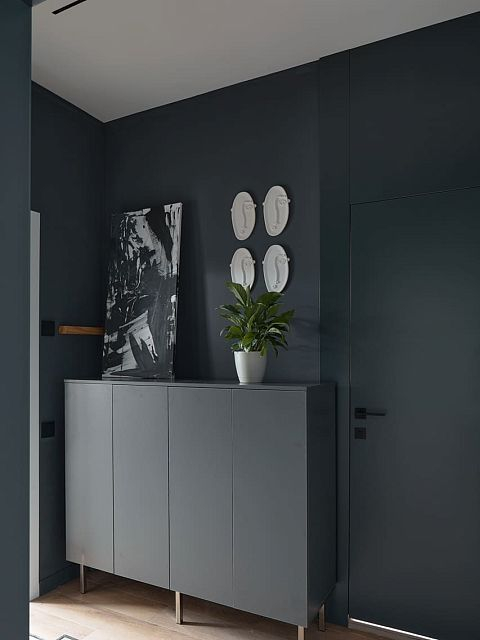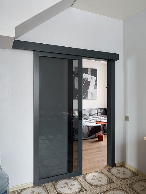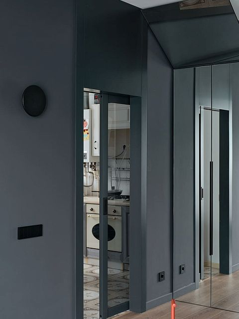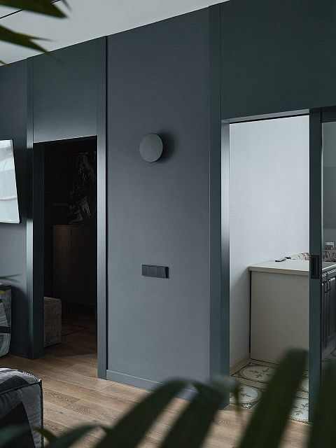 В создании стильного интерьера активно принимала участие фабрика «Терем», установившая двери модели Porte в изысканном цвете атрацит, а также раздвижную перегородку Corsa1.
