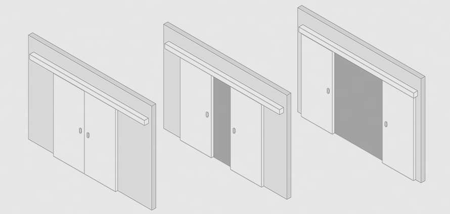 Система Synchro устанавливается только на двустворчатое полотно. Оставьте необходимо пространство над проемом для того, чтобы закрепить направляющие.