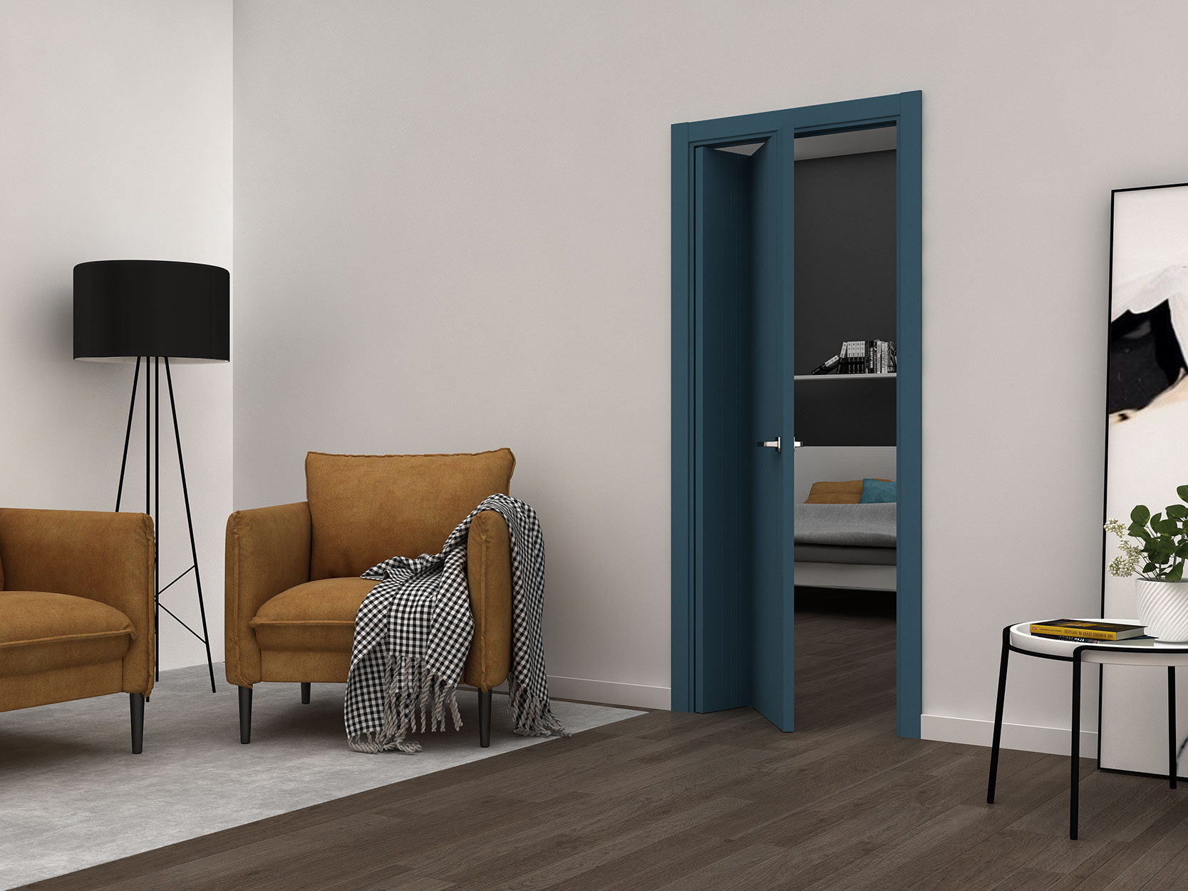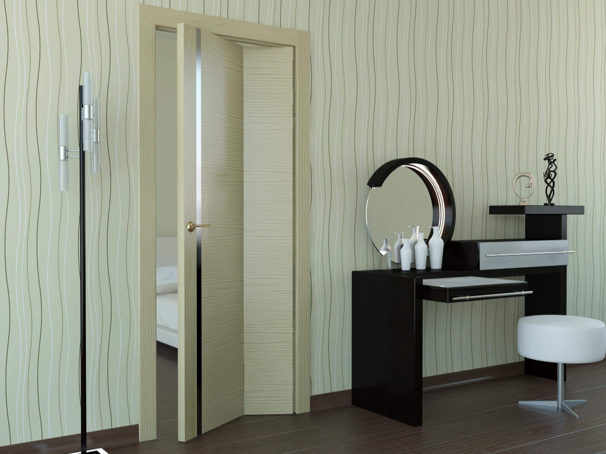 Значительная экономия места может быть актуальна для оформления любых комнат. Особенно комфортно использовать дверь с таким механизмом в узких проходах или коридорах.